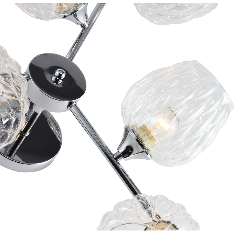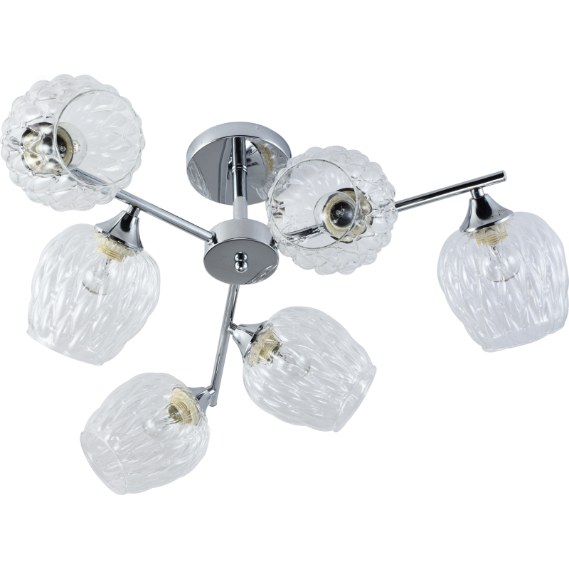 Люстры потолочные Rivoli Arlene (арт. 3139-306) - это сочетание трендовой хромированной арматуры и прозрачного дизайнерского стекла. Люстры в гостиную Arlene с 6 узорчатыми стеклянными плафонами великолепно пропускают свет, освещая площадь 18 м2. Арматура люстры отличается лаконичностью форм. Стойкое гальваническое покрытие люстры модного оттенка хром делает Arlene Rivoli удачным заказом для современных интерьеров и хорошим вариантом люстры на кухню. Такие люстры прослужат долго, радуя своей красотой и отлично дополняя пространство практически любого стиля.