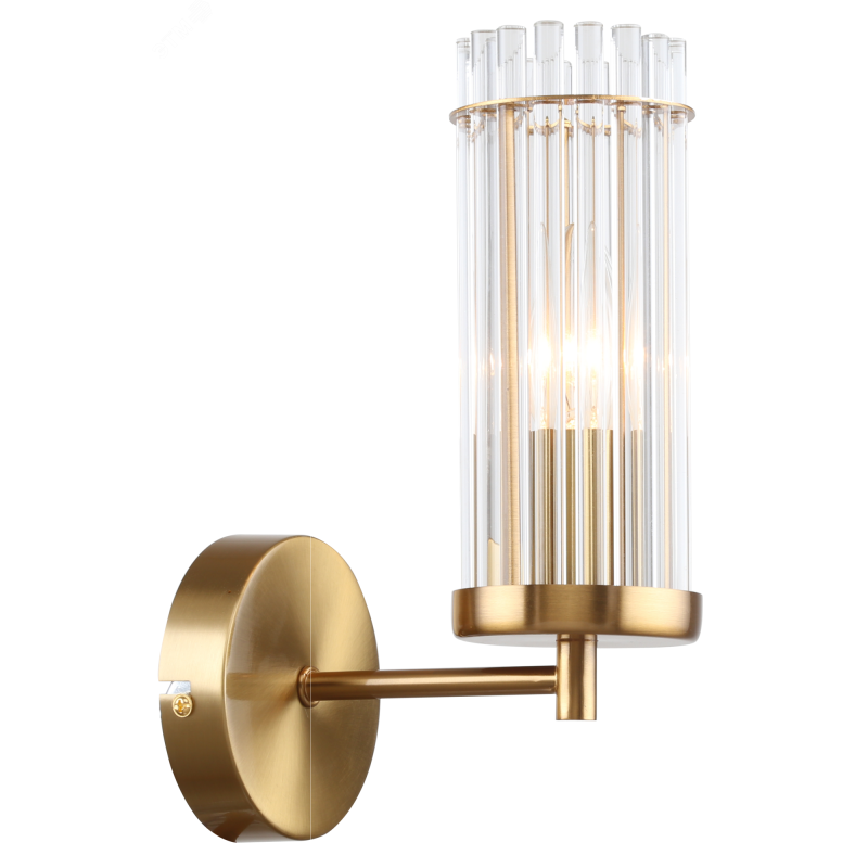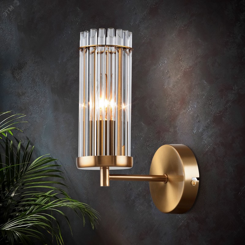 Бра Rivoli Dolly (арт. 2074-401) со стеклянным плафоном и металлическим корпусом цвета латуни. Бра настенное выполнено в классическом стиле, оформлено итальянскими дизайнерами. Настенный светильник бра Rivoli Dolly прекрасно подходит для набирающего популярность стиля современная классика. Вытянутый цилиндрический плафон данного бра на стену состоит из стеклянных трубочек, что выглядит очень эффектно. Стекло бра отлично пропускает свет, что обеспечит покупателя качественным дополнительным освещением. Бра Dolly над кроватью позволит читать перед сном, не портя зрение. Рекомендуем купить для данного настенного светильника лампу Е14 мощностью 40 Вт.