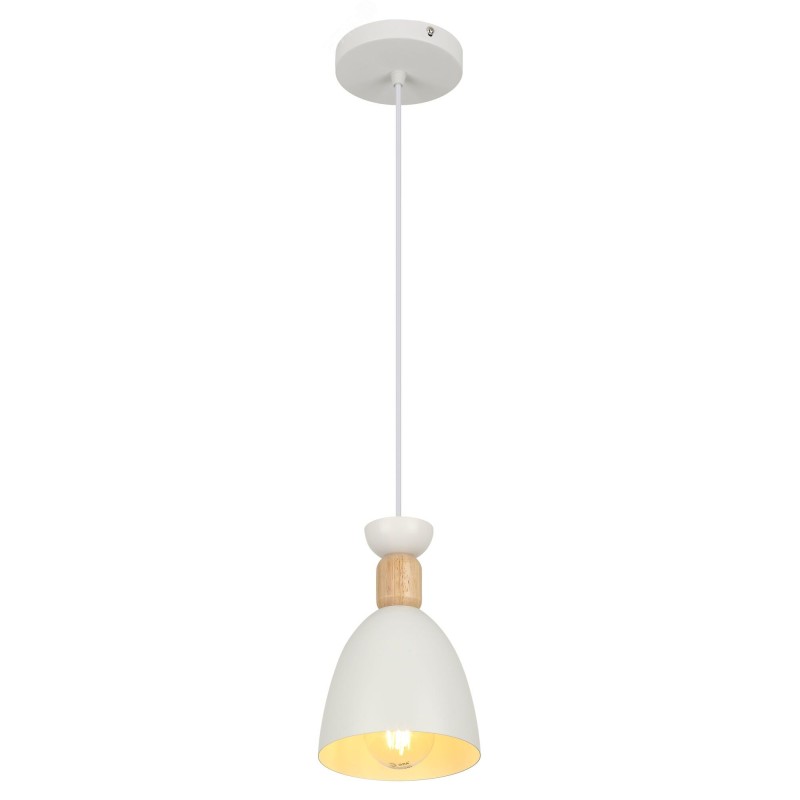 Металлические подвесы с деревянными элементами на 1 лампу - идеальный выбор для интерьеров в стиле скандинавский минимализм и современный лофт. Доступны в белом и сером цветах. Подходит лампа с цоколем E27 и мощностью до 60 Вт (лампа в комплект не входит). Высота светильника регулируется для удобного размещения.