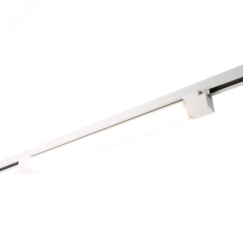 Светильник трековый на шинопровод, однофазный (ДПО) FERON AL232, 30W, 4000К (белый), 170-265V, 2100Lm, цвет белый, корпус алюминий, рассеиватель пластик, вращение 0/90 град., 482*33*41 мм. Светильники представляют из себя линейный трековый светильник ''световую линию'' с возможностью регулировки направления луча. Для создания общего освещения внутри помещения. Стабильная светоотдача без деградации ''тускления'', высокая цветопередача: >80, перемещение светильника по всей длине шинопровода позволяет менять акценты освещения в зависимости от перестановок в интерьере, простой монтаж и надежная фиксация, отсутствие слепящего эффекта благодаря матовому рассеивателю.