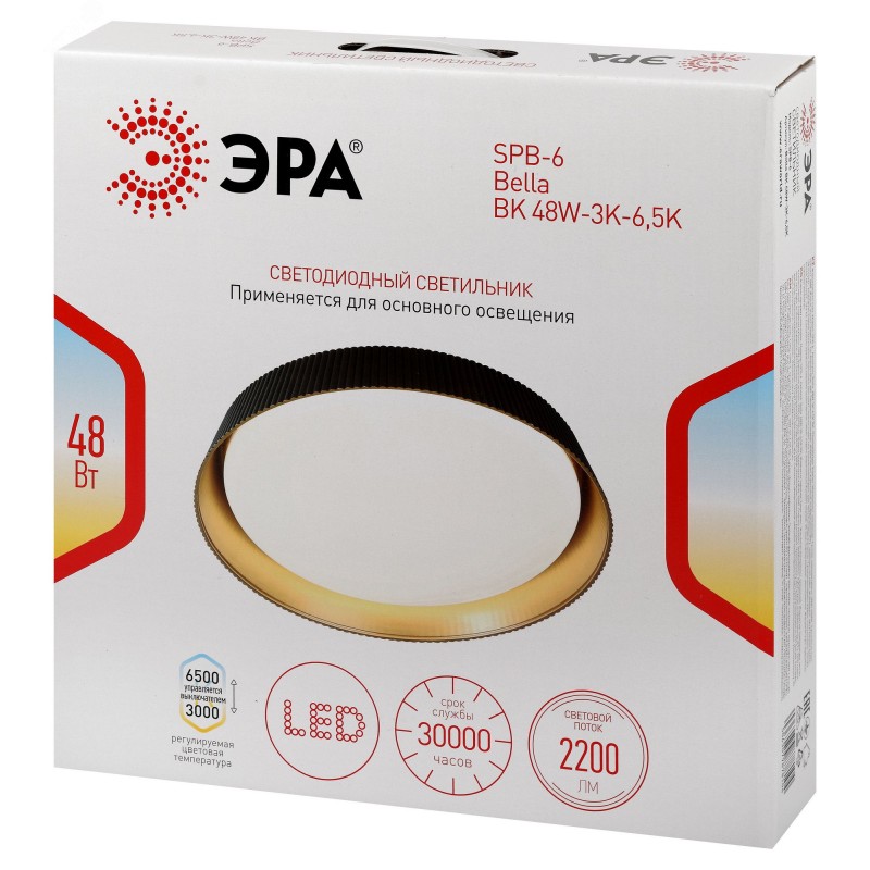Светодиодный светильник ЭРА SPB-6 Bella 48W-3K-6,5K BK – современное решение для общего освещения жилых и коммерческих помещений. Компактные размеры 400?70 мм позволяют использовать его в сухих пространствах (степень защиты IP20) с низкими потолками, а круглая форма плафона сочетается со многими интерьерными стилями. Мощность светильника 48 Вт, а световой поток – 2200 лм. Матовый рассеиватель обеспечивает равномерное распределение света без бликов и дискомфорта для глаз. Цветовая температура регулируется в диапазоне 3000К-6500К, создавая комфортные условия для работы и отдыха. Рекомендуемая площадь освещения – 12 м2. Встроенные светодиоды отличаются низким энергопотреблением, сроком службы до 30 000 часов и стабильным свечением без мерцания. Светильник легко монтируется, не требует обслуживания и может использоваться как основное или дополнительное освещение.