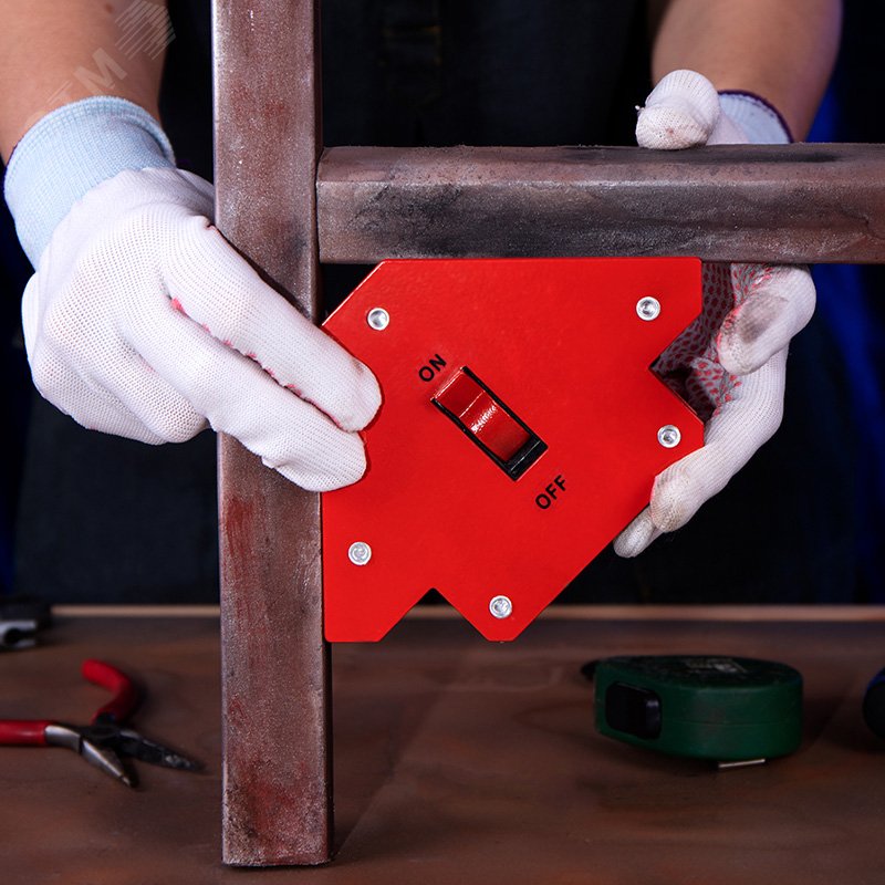 - Преимущества:Доступны углы 45, 90, 135 градусов|Позволяет удерживать до 11,3 кг|Быстро и надежно соединяет детали до процесса сварки|Все работы могут осуществляться одним человеком|Сокращает время работы, заменяя различные зажимы и струбцины|Профессиональный уровень материалов|Выключатель позволяет в любой момент отключить магнитные свойства изделия