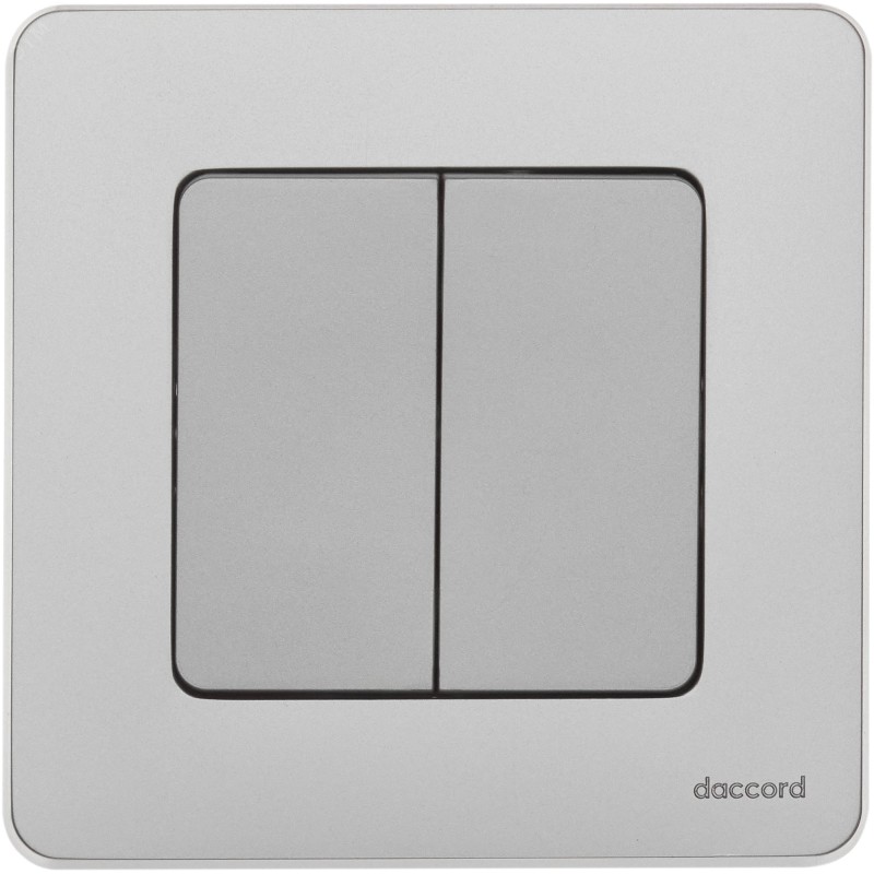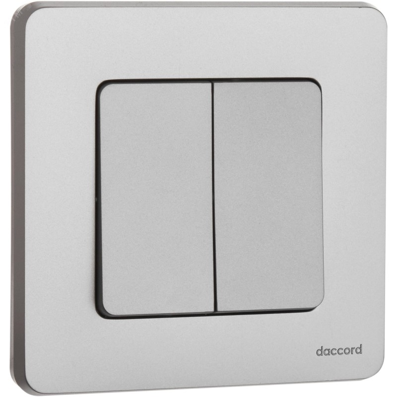 Выключатель двухклавишный скрытого монтажа Inspiria, цвет ''Алюминий'', номинальный ток 10АХ, напряжение ~250В, безвинтовые зажимы. Устанавливается в жилых и общественных помещениях для управления приборами освещения, вентиляции и т.д. Предназначен для управления двумя электрическими цепями.