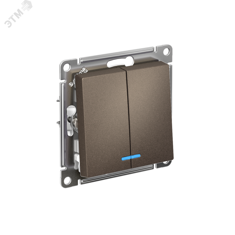 Механизм Systeme Electric (ранее Schneider Electric) серии AtlasDesign в цвете мокко выключателя 2-клавишного c подсветкой подходит для сетей 250 В, на ток 10 А. Благодаря светодиодной подсветке синего цвета изделие легко найти в темноте. Двухклавишный выключатель позволяет управлять двумя источниками света с одной точки. Лицевые детали из качественного ABS-пластика, устойчивого к царапинам и УФ-излучению.