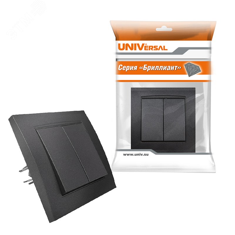 Уникальное дизайнерское решение, в котором гармонично сочетаются традиционная классика и современный стиль. Плавные линии, четкие контуры и соответствующие современным тенденциям цветовые решения идеально смотрятся в любых интерьерах. В серию входят клавишные выключатели, переключатели (выключатели проходные), электромеханические светорегуляторы (диммеры), штепсельные розетки, телекоммуникационные розетки стандартов RJ 11 (телефонные), RJ 45 (''компьютерные'') и телевизионные розетки. Благодаря разнообразию ассортимента функциональных модулей и возможности цветового комбинирования, серия ''Бриллиант'' позволяет полностью решить архитектурную задачу в одном стиле. Серия выпускается в четырех цветовых гаммах: Белый, Слоновая кость, Серебро, Графит.