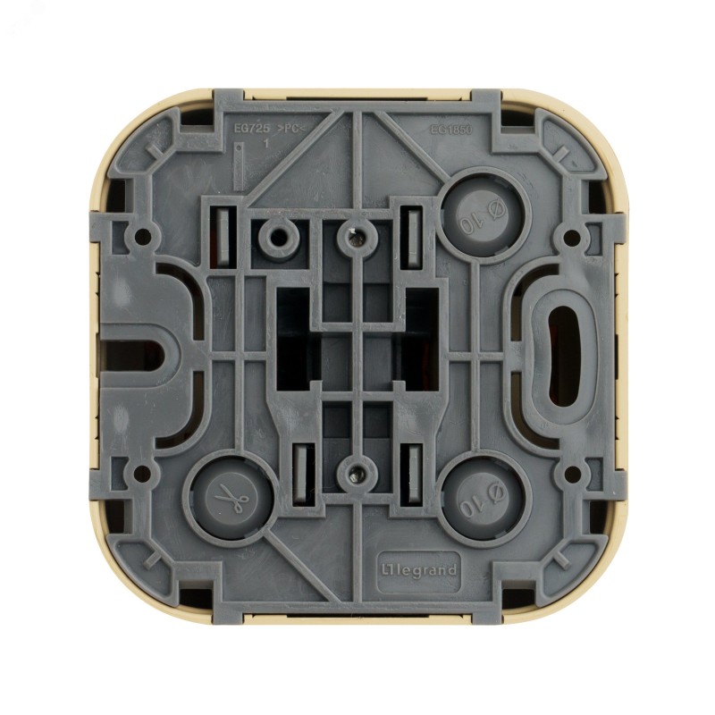 Современный формат накладного монтажа|Механизм изготовлен из высококачественного поликарбоната, не проводит электрический ток, не поддерживает горение|Простое выравнивание изделий при установке в ряд, благодаря специальной форме основания|Корпус ударопрочный из пластичного полипропилена, стойкого к внешним воздействиям|Перфорация на корпусе для безошибочного вырезания отверстий при монтаже открытой проводки|В основании преднарезаны 4 отверстия для подвода кабеля при монтаже скрытой проводки