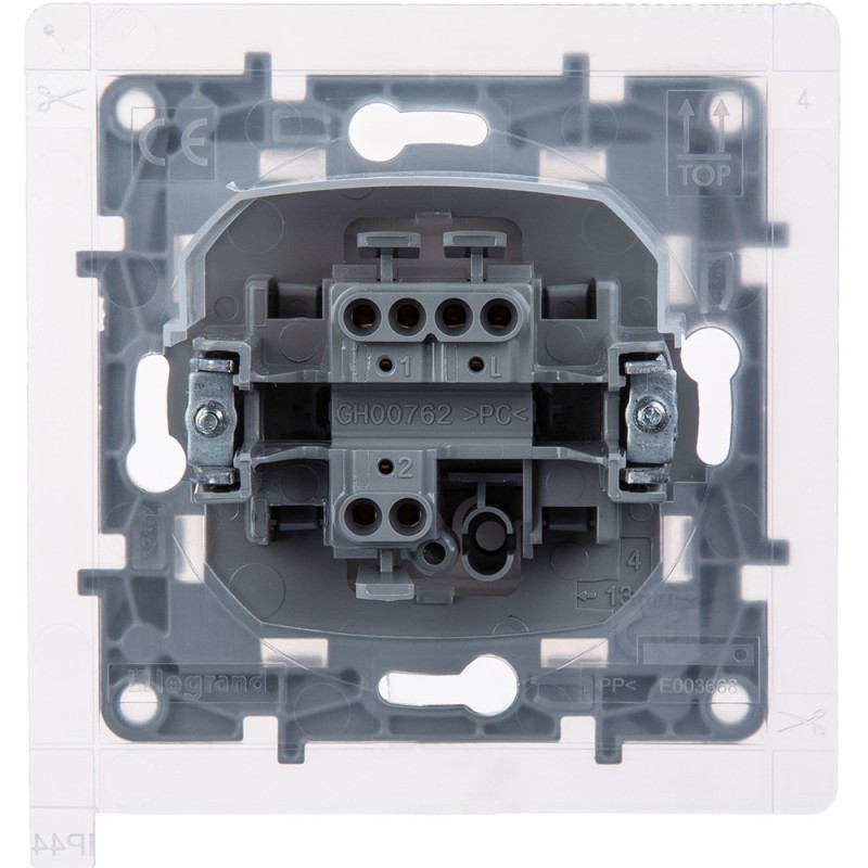 - Преимущества:Степень пыле-влагозащиты IP44 позволяет устанавливать механизм в местах с повышенной влажностью|Надёжная IP защита обеспечена мембраной с обратной стороной механизма и уплотнительной прокладкой между лицевой панелью и корпусом механизма|Механизм устанавливается в стандартные рамки от 1 до 5 постов|Суппорт и корпус механизма изготовлены из высококачественного поликарбоната, обладают высокой прочностью, не проводят электрический ток и не поддерживают горение|Специальный профиль внешнего контура суппорта обеспечивает лёгкость выравнивания при многопостовом монтаже|Безвинтовые зажимы для присоединения проводов обеспечивают быстрое подключение и отключение, гарантируют надежное и долговечное соединение и не требуют обслуживания