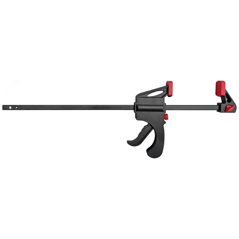 Предназначена для фиксации деталей. Может использоваться как распорка при перестановке губок. Армирование корпуса фибергласом повышает прочность и износостойкость. Закалка стальной направляющей повышает устойчивость к механическим воздействиям. Механизм сброса позволяет быстро снять струбцину с зажимаемой детали. Пластиковые накладки на губках для защиты зажимаемых изделий от повреждений. Порошковое антикоррозийное покрытие направляющей.
