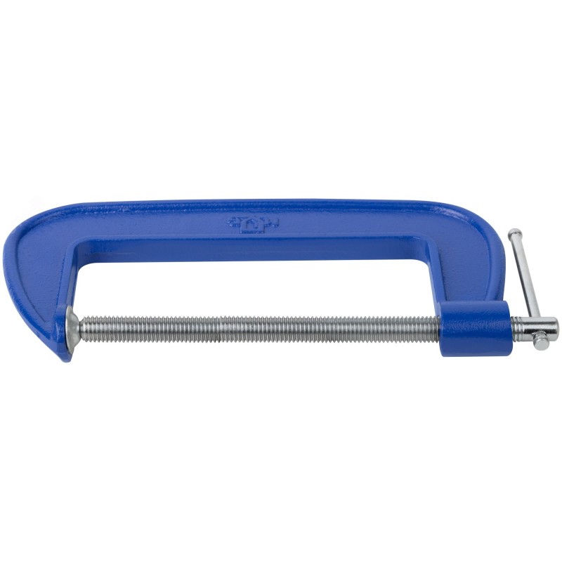 Струбцина типа G MOS используется для удержания или соединения различных деталей при выполнении столярных и слесарных работ. Тип зажима - винтовой. Подвижная часть струбцины оснащена специальным рычагом для удобства вращения, что позволяет эффективно передать усилие и крепко зажать детали.