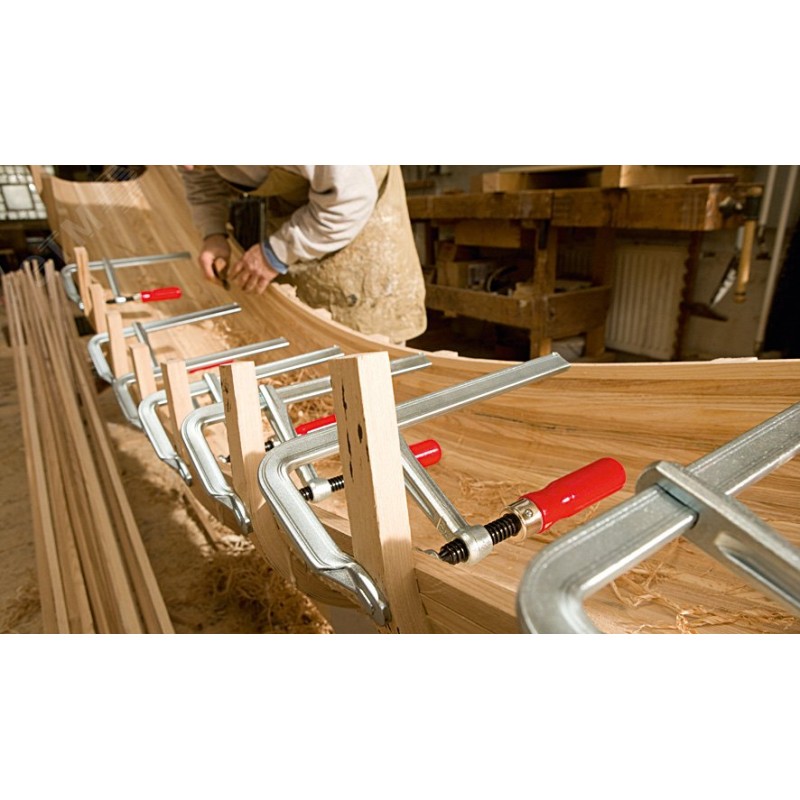 - Преимущества:Максимальная стабильность зажима. Оптимизированная форма профиля гарантирует создание большего зажимного усилия|Кованая U-образная подвижная скоба из кованой стали гарантирует высочайшую надёжность за счёт линейной передачи усилий|Заменяемая без дополнительного инструмента опорная пластина сделает Вашу повседневную работу более удобной|Легкоперемещающийся винт с обработанной поверхностью и трапецеидальной резьбой отличается легким ходом|Благодаря оптимированному профилю направляющей, зажимное усилие за оборот винта возросло на 20%|Зажимное усилие до 6000Н