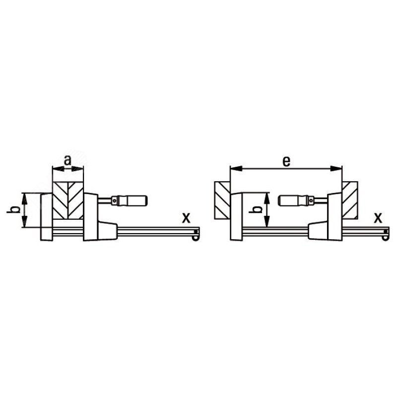 Большие плоские поверхности из противоударного и стойкого к растрескиванию усиленного полиамида расположены параллельно|Направляющая с полым профилем BESSEY собственного производства специально предназначена для струбцин|Наконечник из противоударного полиамида служит для параллельной поддержки струбцины. Его можно снять руками|Зажимное усилие до 1500Н|Параллельные зажимные поверхности с очень большими площадями прилегания|Зажимают разные формы вокруг направляющей|Универсальные