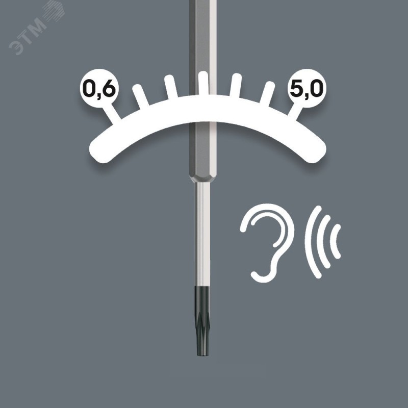 - Дополнительная информация:Винты TORX. Измеряемая величина 0,6 Нм-3,0 Нм (0.4 фунт-сила-фут-2.2 фунт-сила-фут), с фиксированной предварительной настройкой. Погрешность ±10 %. Точное срабатывание и звуковой сигнал при достижении требуемого момента затяжки. Рабочий конец - шестигранник, 4 мм, с обточкой. Исполнение наконечник Black Point. Ручка Kraftform с защитой от перекатывания, многокомпонентная. TX 8x1.2